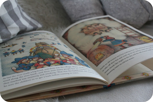 The children have been adoring "Children of the Northlights" by Ingri and Edgar Parin D'aulaire... it feels quite "Laura Ingalls Wilder" in style, but it's beautiful illustrations, and wonderful descriptions make it an accessible read for our two-year-old too, despite the fact it was first published in the 1930s! The children have been fascinated by the lives of the Sami people in Lapland, and it has inspired much of their play the last couple of weeks (more on that here!) The wonderful world of snow and sledges, reindeer racing and bundled up babies being pushed down a mountain (!) has been fascinating for them. They have wanted to read it over and over, and its one of those beautiful books that I have most definitely appreciated as much as they have. A MUST buy for your little people... I promise you will not regret it! (Meanwhile I am off to check out all their other titles!)
